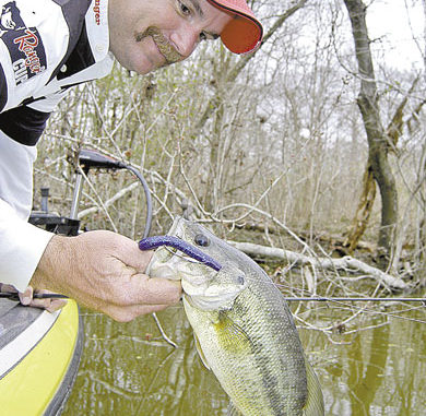My No. 1 bait at this time of year will be the Strike King Redfish Magic because it produces more vibration than most other types of spinnerbaits, making the bait easier for the bass to find and eat. The lure comes with a nickel or gold blade. I prefer the gold blade on cloudy days and the nickel blade on sunny days, regardless of the water color.