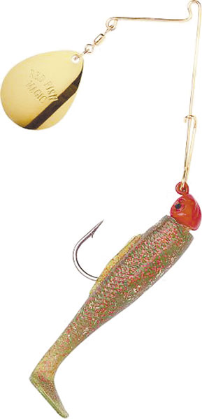Instead of a skirt, the Redfish Magic has a rubber fish-type body. When I’m fishing a nickel-plated blade on the Redfish Magic, I prefer a pearl-colored body. On dark days, when the weather’s cloudy, I prefer a gold blade with a black body, a chartreuse tail and a red head.