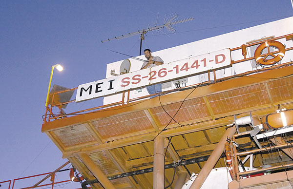 Acting as our eye-in-the-sky, Freeman kept up the aerial advice as we continued to work around the rig. Not wanting to lose his best spot to a late arriver, LaCoste got in position between two big sections of the rig, and dropped his anchor. All we did for the next hour was haul water.