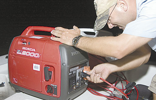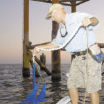 “Sometimes you’ve got to take matters into your own hands,” he said as he pointed the lights toward a dark corner between a pilling and a small platform. “I bring the generator as a backup. On some nights when there are a lot of people out, if you can’t get on a light you basically can’t fish. These lights allow me to go anywhere I want to and catch fish.”