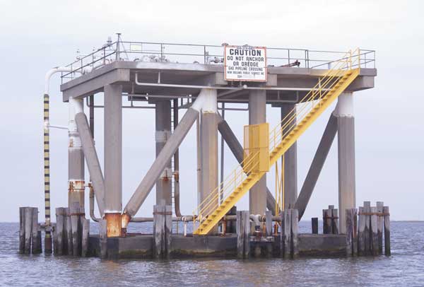 There are several rigs and wellheads that cross the lake all the way to the western shoreline near the Chef and Rigolets.