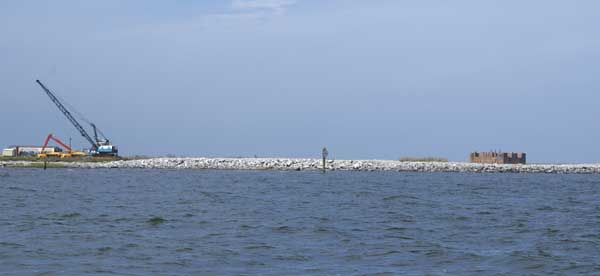 The next phase of the project will be to line the south shoreline from Doulluts back to the old Navy base and then cross over Bayou Ysclosky to tie in and extend the rocks along the fort. Caution should be exercised while fishing in this area until the projects are complete.