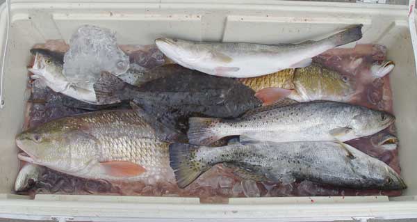However, all of the others are there too. Regular catches of flounder, sheepshead, drum and sail cats are also made.