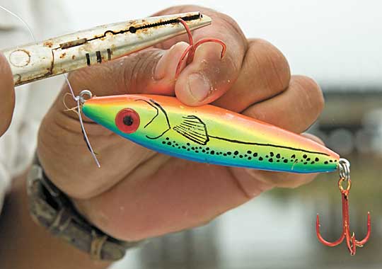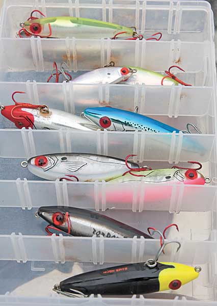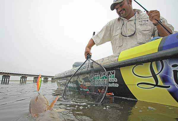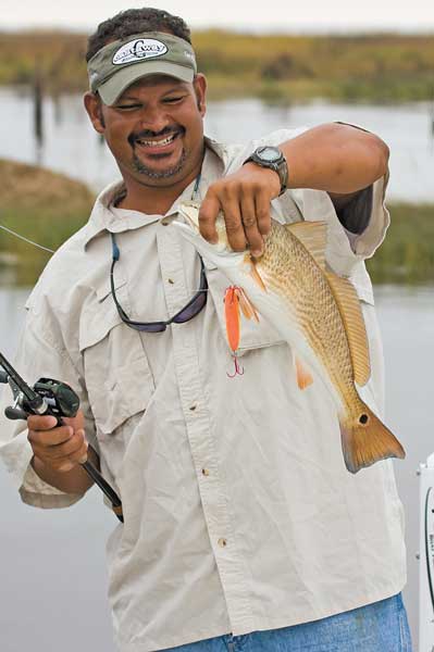 Although Dumas and Champagne earned their reputations by slamming speckled trout on the bridges, both anglers enjoy taking the time to head east to try the redfish action. And since they’re looking for a little excitement, you can bet they’re not going to be fishing dead shrimp under a cork. They’re looking for a change of pace, so it’s got to be topwaters for them.