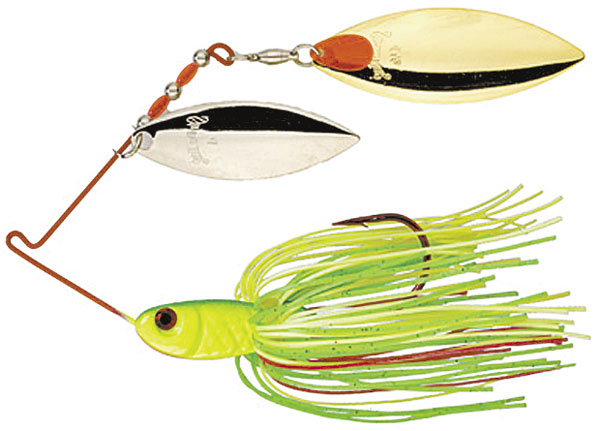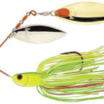If the weather’s a little cooler and there’s cloudy weather and some wind, you can’t beat reeling a Strike King Premier Elite spinnerbait with a double willowleaf blade and a green gizzard, a blue gizzard or a sexy shad skirt — any skirt that looks like a shad — pretty fast.