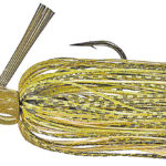 On a bluebird day after a cold front, I may increase the size of my jig to 3/4- or even 1-ounce, and drop it through some of that matted grass to see if the bass are holding under the grass. When I’m punching the grass, I’ll be fishing with 50- or 60-pound-test braided line. And in clear water, I’ll choose a Hack Attack jig in either Alabama craw or sexy craw color.