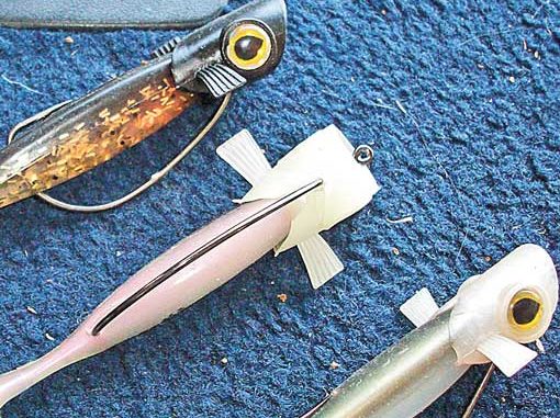 “There’s all kinds of ways to use it,” he said. “You can put it on the nose of Flukes. It’s got a small spit, you know, and some people are even using it on big, straight-tail worms — about a 10-inch worm rig that you can work through the weeds. It adds a little extra to something when you don’t want it to sink.”
