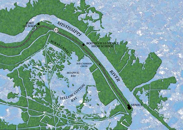 But some planning is called for. For instance, in March the Mississippi is high and the wind (as mentioned) typically out of the southeast. The muddy river water gushes into the Gulf from Red, Tante Phine, Tiger and Southwest passes on the west side and through the breaks below the Ostrica locks (the locks themselves, nowadays), Baptiste Collette, Main Pass and Pass a Loutre on the east side.