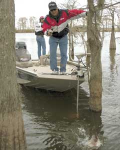 The cypress trees are like the docks. There are so many of them it makes it difficult for anglers to decide which trees to fish. According to Roberts and Smith, particular trees are best depending on the season.