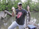Capt. Mary Poe (foreground) says June action is outstanding on Calcasieu Lake. She’ll get no arguments form Otis Taylor (background).