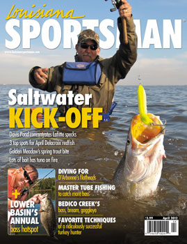 Cover: April 2012-Fishing April 1, 2012 Louisiana Sportsman Contents, Fishing Is there a better month than April? Trout are getting active, and bass are still clobbering anything in the water. This page is available to subscribers. Click here to sign in or get access. April 2012Statewide LA
