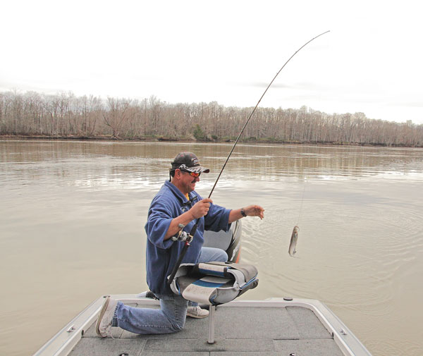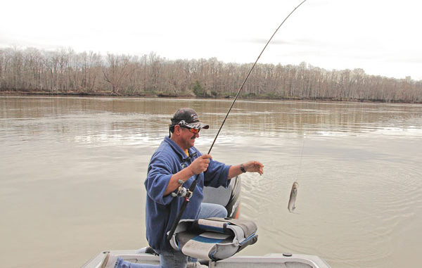 “In the springtime, you can come here and sit and see them popping and fanning their tails. They’ll come up on the surface and feed on shad and river shrimp. That’s when I won’t use a weight, and I’ll just let it rise and float to the surface with the current.”