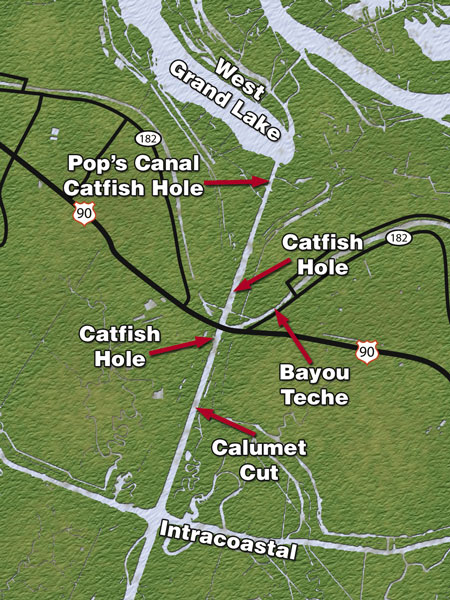 A few locations anglers should try out when fishing the Calumet Cut are north of the highway. When the Bayou Teche locks are open, the stretch from the locks to the Cut can be productive.