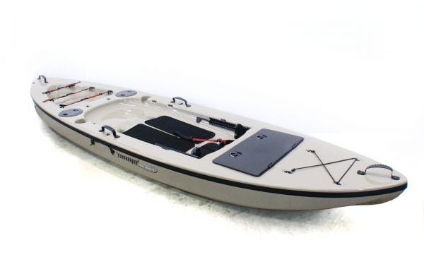 Stealth and stability, the Adios will put you on top of the fish — literally. The Adios is a “stand-up paddle kayak” that is unsurpassed for sight fishing. It looks different because it is different. It combines the ability to stand and paddle/pole along with sitting comfortably. A perfect blend of stand-up paddleboard stability and the nimble maneuvering of a kayak — with fish catching features any serious angler can appreciate.