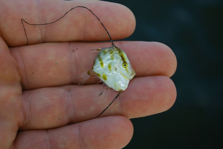 Other common names listed for the species are horsehead (for obvious reasons), dollarfish (they are shaped like silver dollars), and hairfinned dory. Your guess is as good as mine on the rationale for the last name.
