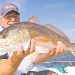 Although some reds will remain on the bank when that happens, Bush says it’s impossible to pass up all that action out in the middle where redfish will thrash the surface into a whitewater frenzy.
