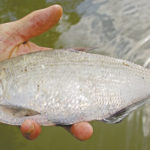 The two species are similar. Both are nondescript silver fish with no outstanding features other than having the last few rays in the dorsal fin elongated into a whip-like streamer. Both are strongly laterally compressed, a biologist’s term for fish that are flattened side-to-side.