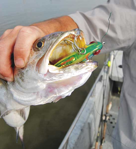 The roar of the outboard and the sleepy dreaminess of the pre-dawn left each man alone with his thoughts during the ride out, but each was no doubt pondering past May trips when the rhythmic clicking of noisy topwater plugs was stopped cold by ferocious explosions from furious speckled trout.