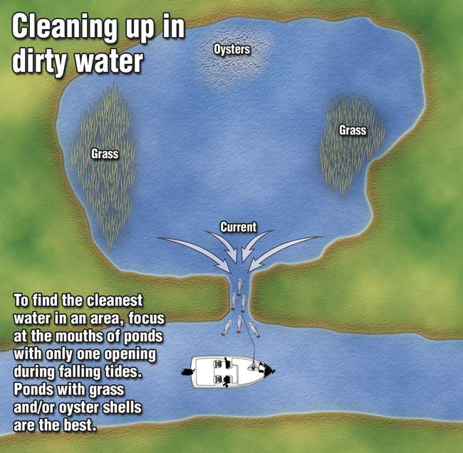 “In dirty water, the fish are tougher to locate,” he said. “You pretty well have to hit them on the head. But in dirty water, they’re usually grouped up. Once you find them, you can really catch a lot.”