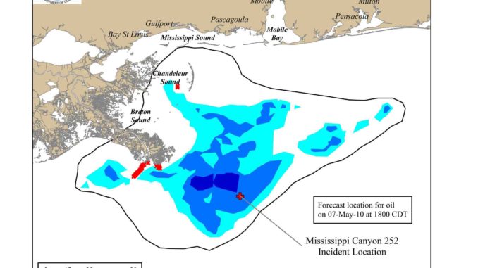 And the oil certainly seems to be moving westward. The latest National Oceanic and Atmospheric Administration forecast shows oil stretching westward and even northward past the mouth of Southwest Pass by 6 p.m. Friday (May 7) – and that’s the absolute worst-case scenario.
