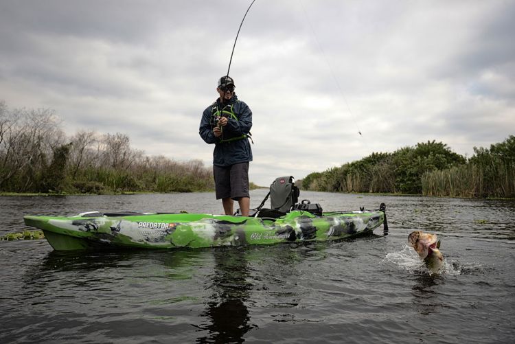 Old Town’s 13-foot-2-inch Predator XL Minn Kota model is technically a special-purpose kayak, but it was designed to bridge the gap between fishing kayaks and shallow-water skiffs.