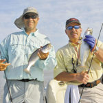 Eddie had been marveling at their “exertion” for almost two hours as they putted around within a quarter mile of us near the western edge of Bastian Bay. Meanwhile, we cast, cursed and flipped off hardheads and gaftops — or watched ladyfish cartwheel and throw our jigs. Our box was “crammed” with a grand total of two barely legal school specs, one 16 and 1/100000000000-inch puppy drum and a flounder that best-belonged in a five-gallon saltwater aquarium.