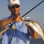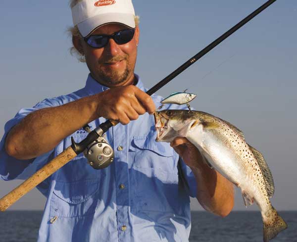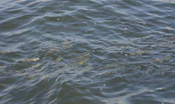 “I don’t see the bait very much during the day on the lake,” said Dumas. “As the sun starts getting low, though, there is no mistaking the fact that the pogies and mullet group up and move to the surface by the bridges. When the bait does that, the trout know it’s time to move up and grab something to eat.”
