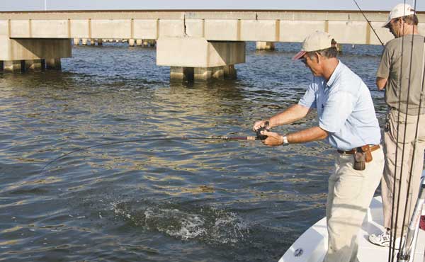 “The evening bite is so similar to the morning bite, with the exception of maybe a different tide, that I approach evening fishing the same way I do morning fishing,” Schlumbrecht said. “Locating the bait will help you locate the fish. Then it’s simply a matter of getting your bait in the water around the bait. And being able to work such a large stretch of the bridges without having to weave in and out of boats is a big plus.”