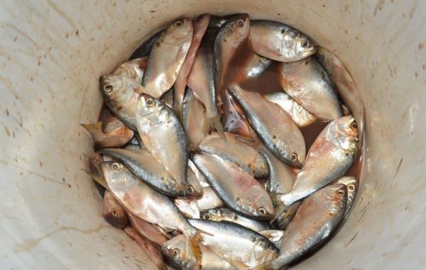 Some yellowfin menhaden, B. smithi, are caught on the eastern end of the fishery and some finescale menhaden, B. gunteri, are caught on the western end. Off of Louisiana, some net sets are also made on thread herring, Opisthonema oglinum.