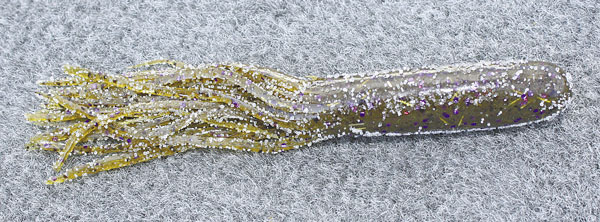 I’ll thread the Strike King Rage Eeliminator as a trailer on the spinnerbait to keep the bait lifted up off the bottom. The Rage Eeliminator has a short, bulky body, but the tail has a slow, wide action. I also use the Rage Eeliminator when I’m fishing the Strike King Pure Poison.