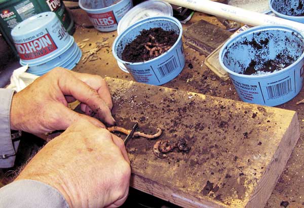 “When you cut the worms, they can get pretty messy, so I dump some corn meal on them, which makes them easier to handle,” he said.