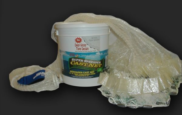 With the new Deep Water Tape Design, the GS-1500 Ultra Spreader has 1½-pounds of lead weight per radius foot and has 3525 insoluble tape on both sides of the mesh. The tape acts like an airfoil and keeps the net open for a longer time, making it ideal for shrimp and other deep water targets.
