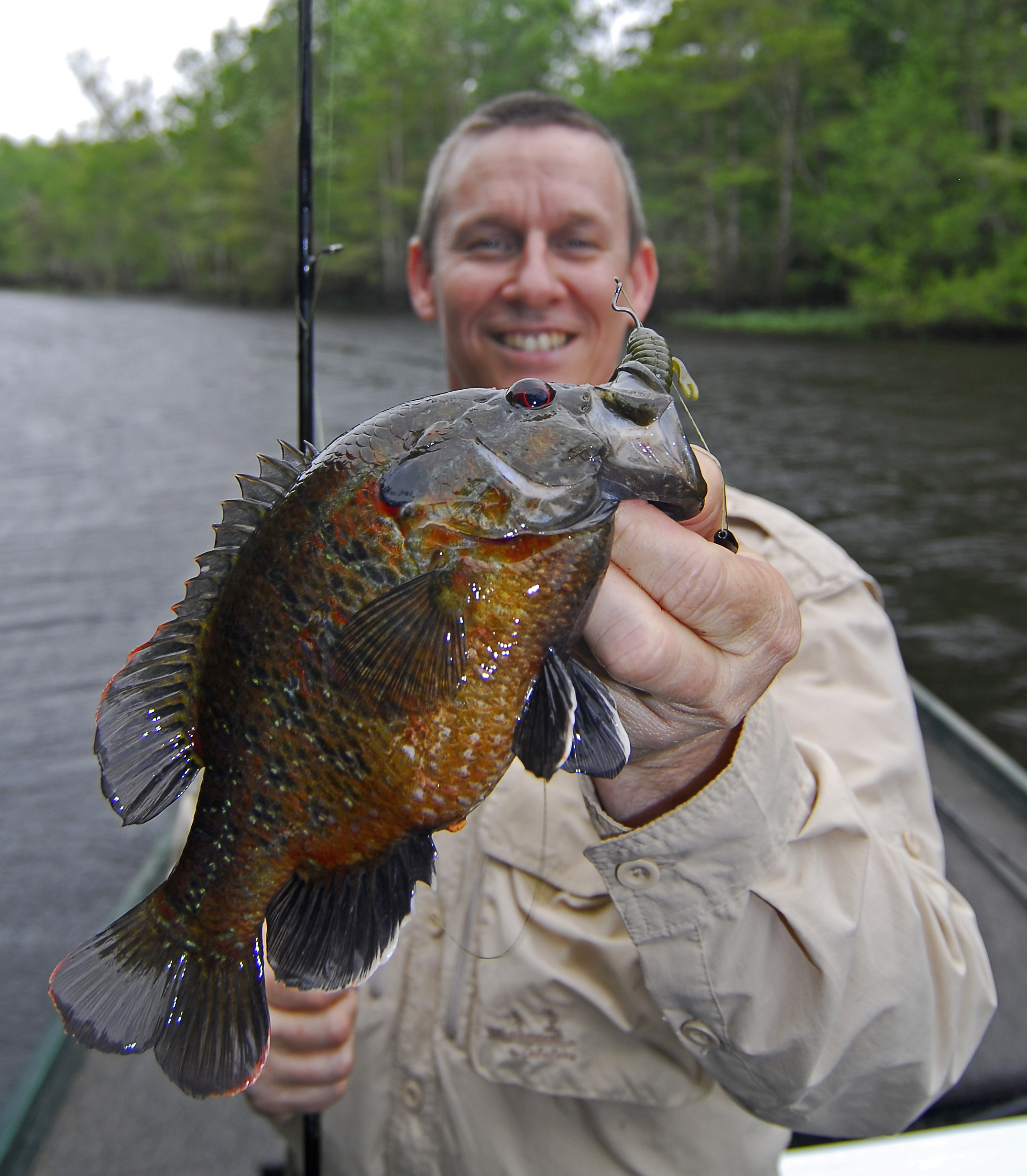 The beauty of the Big Show Craw was that it was compact, and the fish didn’t care if the lure had any claws left. In fact, we hooked up with more fish after the claws were pulled off the bait.