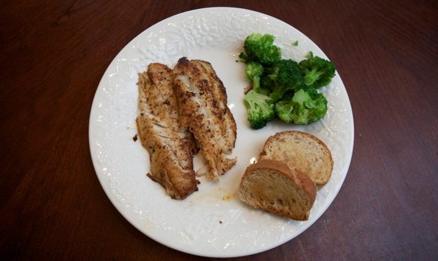“Fire up your burner, and get your iron skillet as hot as possible. While it’s heating, brush each fillet with salted butter on both sides. Sprinkle the fillets with blackening seasoning — I use Paul Prudhomme’s Magic Seasoning Blend.