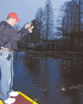 Simar eased the boat into Bayou Conroe, and quickly made the first cast. A fish popped the top of the water to the pleasure of the two Paulina anglers.