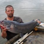 Chuck’s luck finally broke for the better, when by extending one leg deep under a ramp and located a flathead.