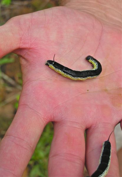 If you don’t keep a close eye on catalpa trees, you could miss the worms’ migration from the ground to the leaves and then back to the earth. Sometimes it only takes a matter of a few days for the worms to emerge, eat the leaves off a tree and disappear.