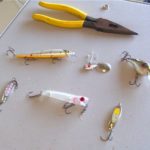 His favorite casting lure during the summer is the 3/8-ounce Rooster Tail, but he also uses a clear Storm Rattlin’ Chug Bug with red eyes with good success.