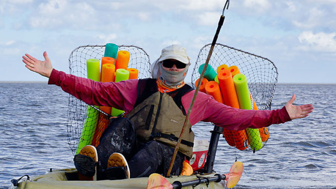 Weaver’s rigs are simple, inexpensive and effective. He only uses the larger-diameter, foam pool noodles cut in half length-ways. Therefore, each noodle becomes two.
