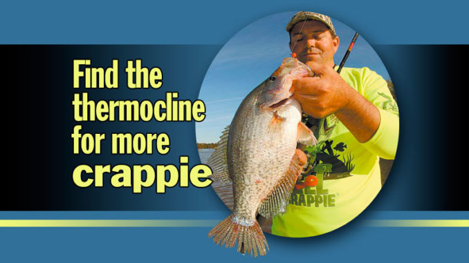 “When it gets as hot as it does in August, you’ll still catch crappie, but even in the early morning, you’ve got to find that thermocline. A lot of anglers can catch crappie in the spring and late fall but have trouble in the summer. These fish don’t just disappear, and they don’t find the deepest holes like many people believe. They find the thermocline, and as long as you can find it too, you’ll catch your share of fish this month.”