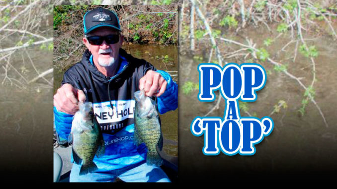 A top is simply a submerged brush top, the top of a bush or tree or a fallen tree with lots of submerged limbs. Tops sometimes lay where they fall, and other times current washes them onto sandbars or into river lakes. Tops hold baitfish — and that’s where you’ll find the feeding fish. They also give fish like crappie a good place to hide from their predators.