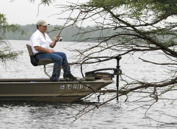To experience high water crappie fishing on Saline-Larto, and to learn more about what the future might hold there, I met up with Randy Hulin at Woodson’s Landing outside Deville early one muggy morning. Hulin, who hails from Tioga, is a legend in crappie fishing circles, and has fished the complex for years.