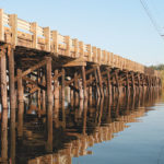 The old bridge stood on creosote pilings and shook and rattled every time a log truck passed over. Some people have even seen pieces of the bridge fall into the water, so there was little doubt a new one was needed. But every fisherman I talked to questioned the need to remove the old pilings. There is a general belief that the pilings are what concentrate the white perch, and that the fish would disperse once they were removed.