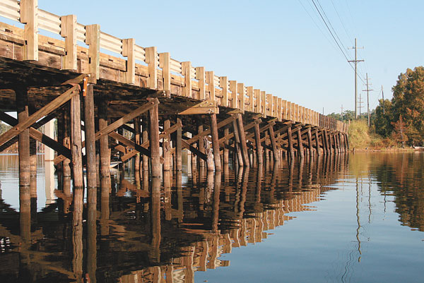 While some people just tie up to a tree or piling and concentrate on fishing one spot, we opted to troll slowly around the bridge and along the cypress trees seeking hungry fish. As we probed the pilings and nearby cypress trees with our jigs, I probed my partners for more information.
