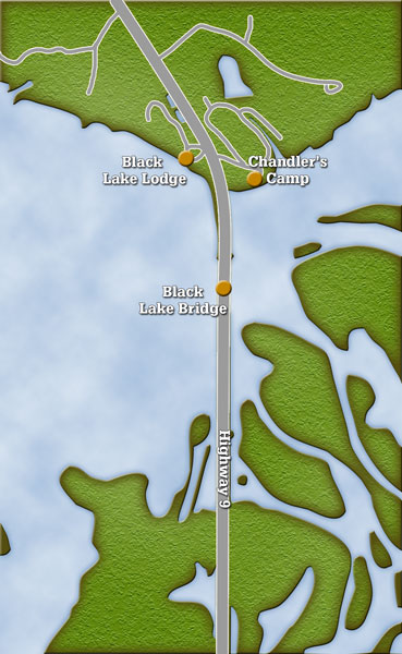 One of the nice things about fishing the Black Lake bridge is that you don’t need a big boat or fish finder. The bridge is just a few hundred yards from Chandler’s Camp boat landing, and you don’t need any electronics to search for a good fishing place.