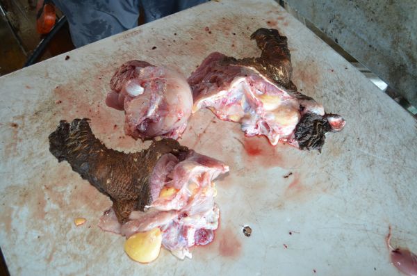 12) Trim and discard all fat from the meat. This is important, as turtle fat has a quite objectionable taste.