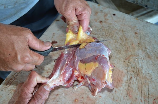 3) Using a knife, cut the plastron’s edges loose from the skin.