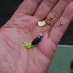 Gold-bladed beetle spins rigged with either a tube jig or grub tail are also go-to baits for Looney. These are reeled with a slow, steady retrieve after being cast as close to woody cover as possible. A black-and-chartreuse combination is his favorite.