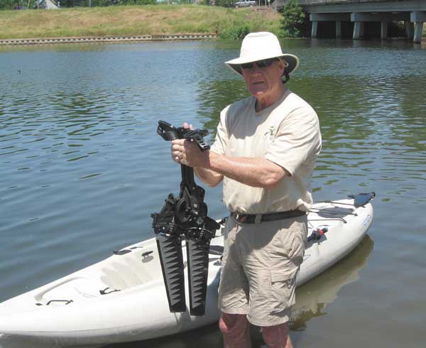 Stability? Not a problem. Earp, a former college tackle, tips the scales at well over 300 pounds today, and his kayak transported him safely and effortlessly along the river.