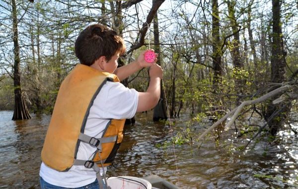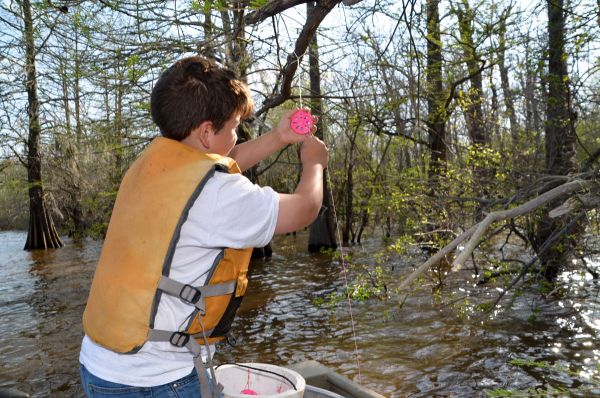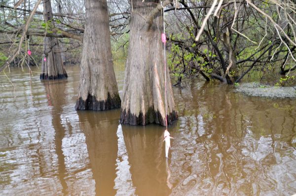 “That’s a lot deeper than we usually set them,” Manuel said. “I fish deeper when the water is rising. Normally, I set the bait about 4 or 5 inches beneath the surface.”